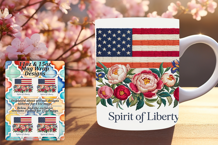 Chic 11oz Mug Wrap Png Artwork , Patriotic example image 1