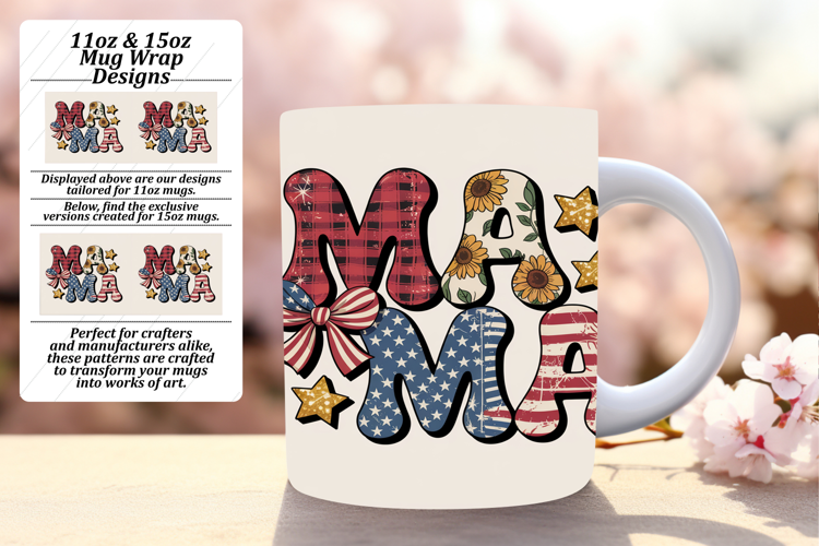 Stylish 11oz Mug Wrap Png Design , Mama example image 1