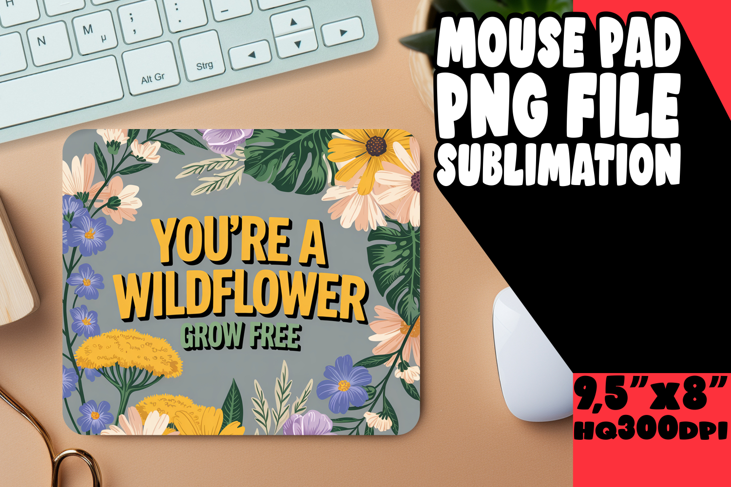 BRIGHT MOUSE PAD SUBLIMATION ART, Flower Quote