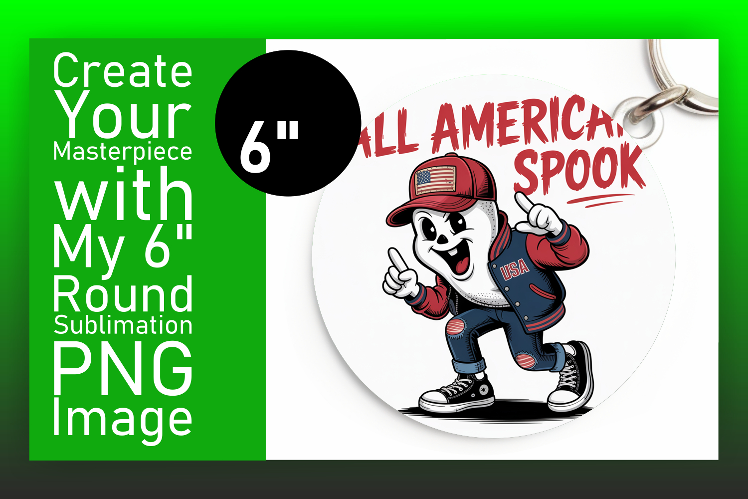 Vibrant Round Design Keychain Template , Funny Ghost