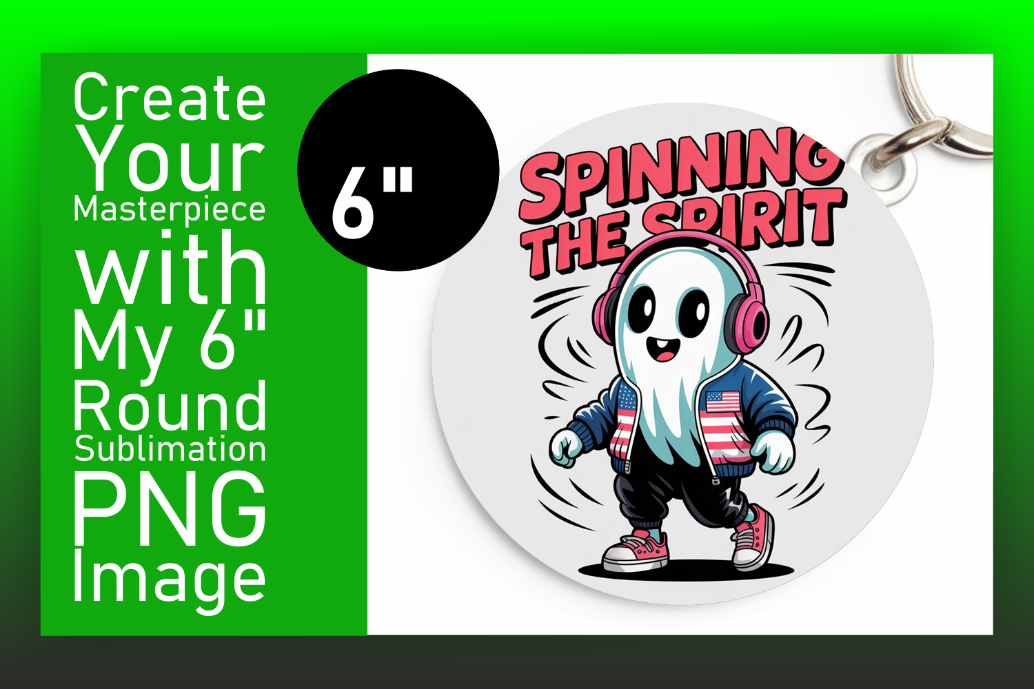 Artistic Keychain Round Design PNG , Funny Ghost example image 1