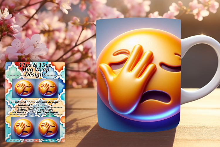 Bright 11oz Mug Wrap Png Design , 3D Emoji example image 1