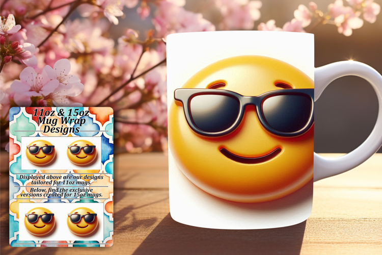 Charming 15oz Mug Wrap Png Artwork , 3D Emoji example image 1