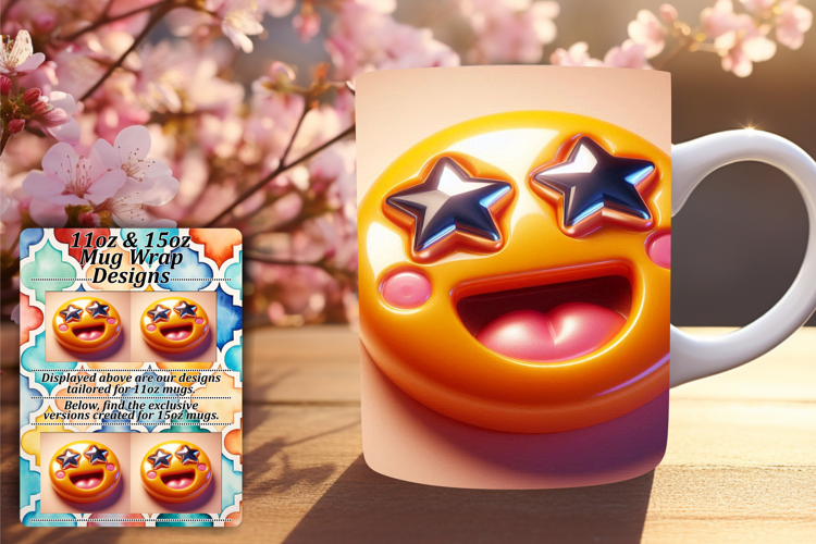 Chic 11oz Mug Wrap Png Design , 3D Emoji example image 1