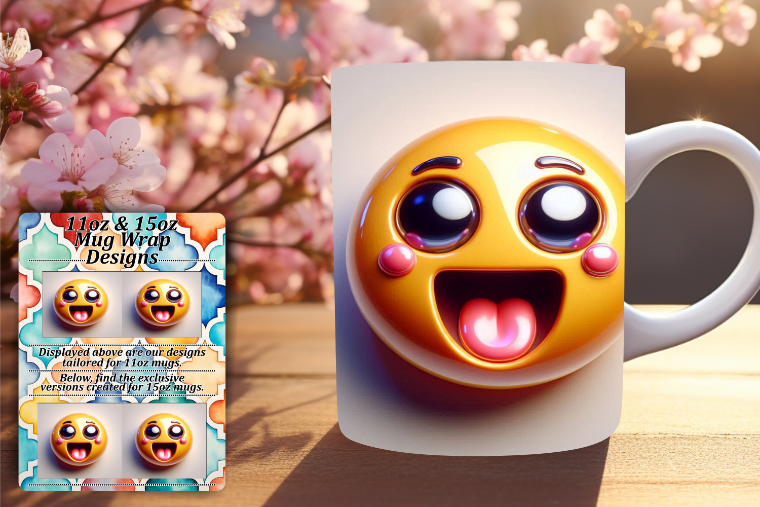 Bold 15oz Mug Wrap Png Design , 3D Emoji example image 1