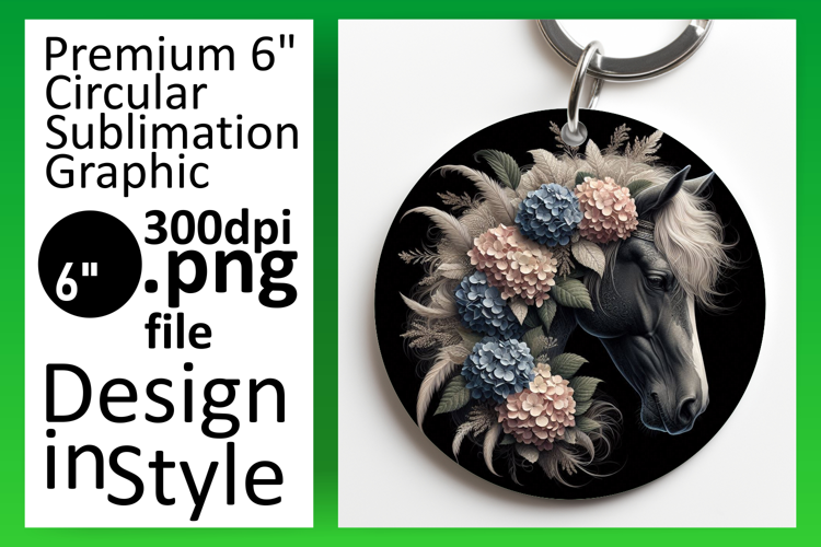 Artistic Round Design Sublimation PNG , Horse example image 1