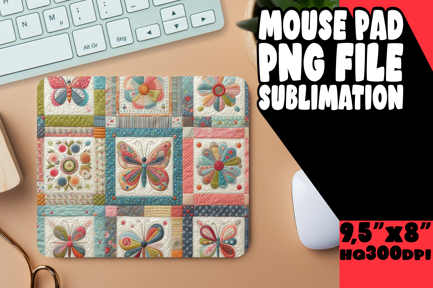 Joyful Mouse Pad PNG Design, Patchwork example image 1
