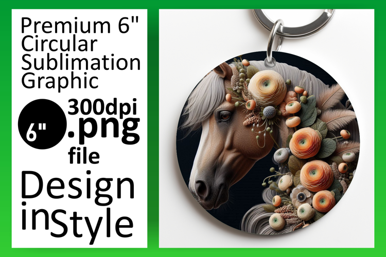 Trendy Keychain Round Design Artwork , Horse example image 1