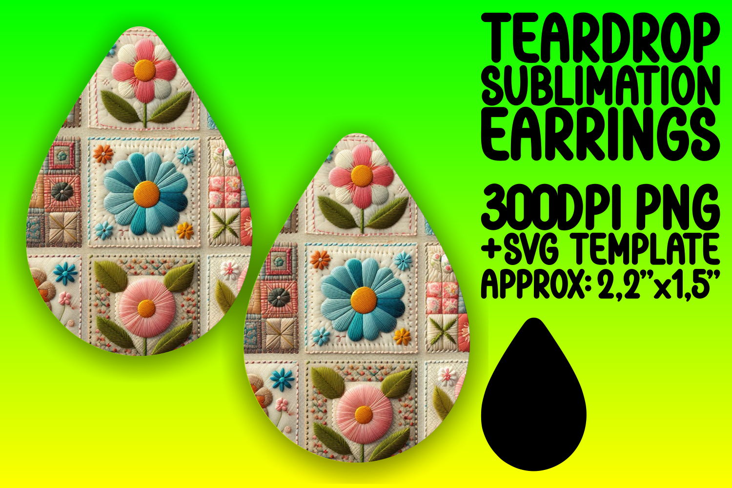 Cute Teardrop Earrings Design for Sublimation , Patchwork