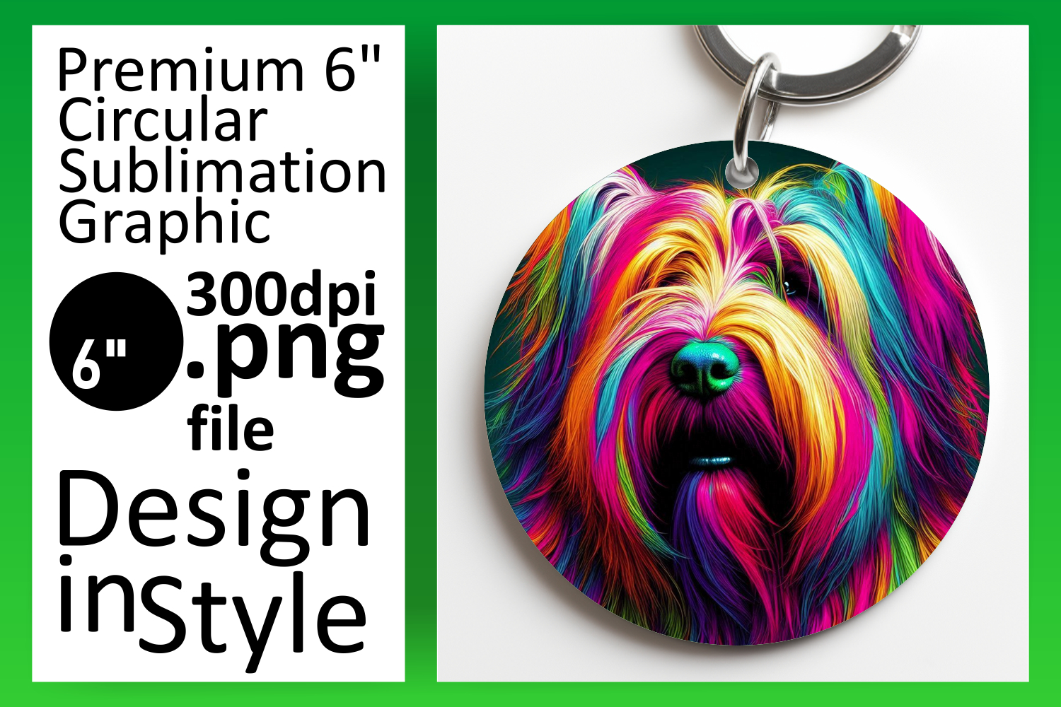 Vibrant Round Design Keychain Template , Dog example image 1