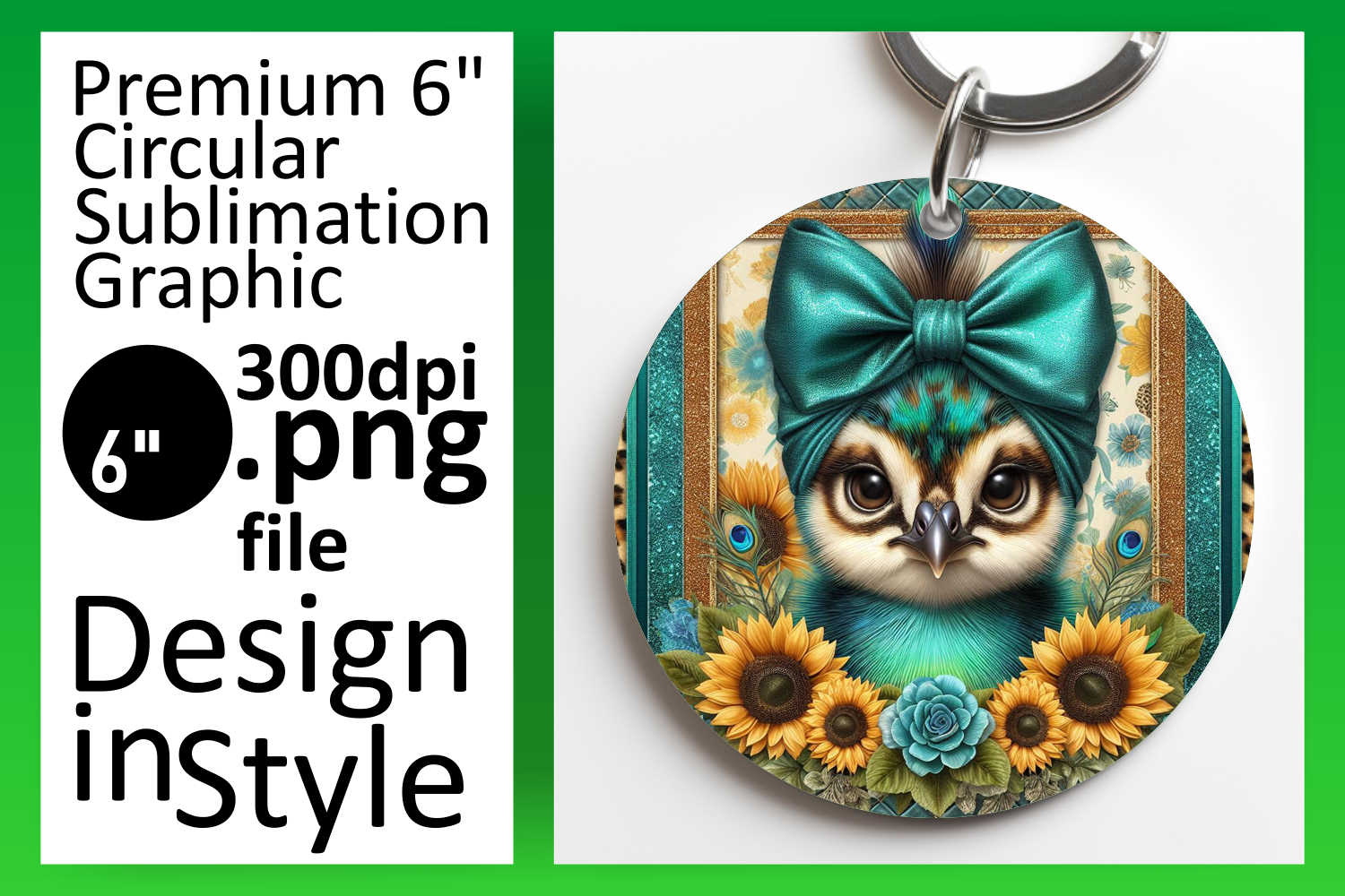 Artistic Round Design Keychain Template , Cute Animals