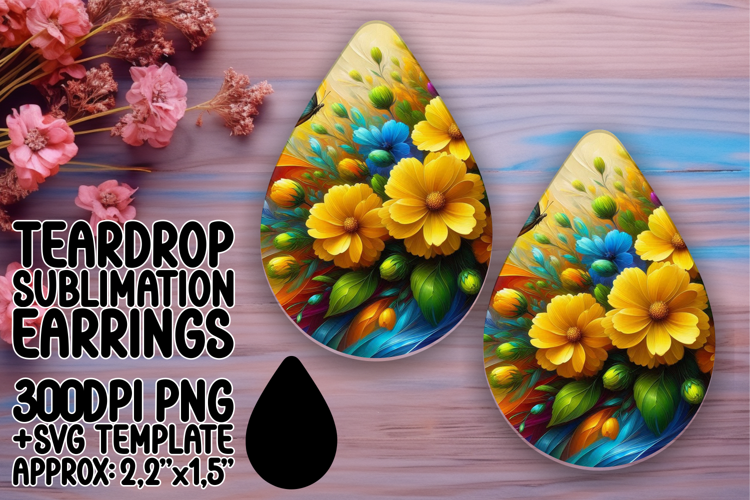 Whimsical Teardrop Earrings Template , Flowers