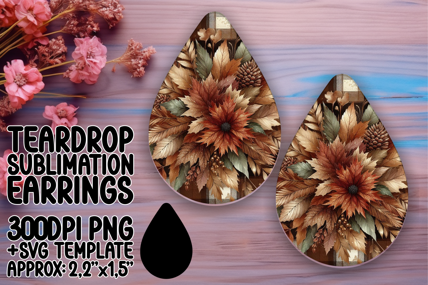 Vibrant Teardrop Earrings Design for Sublimation , Autumn Fl