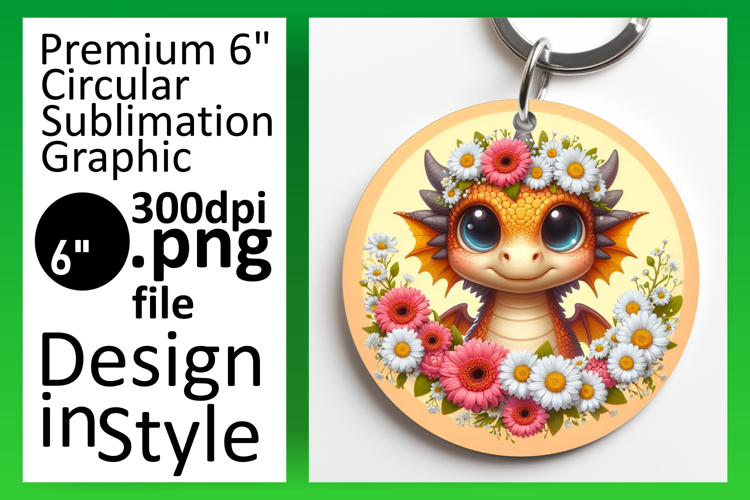 Elegant Keychain Round Design Template , Dragon example image 1