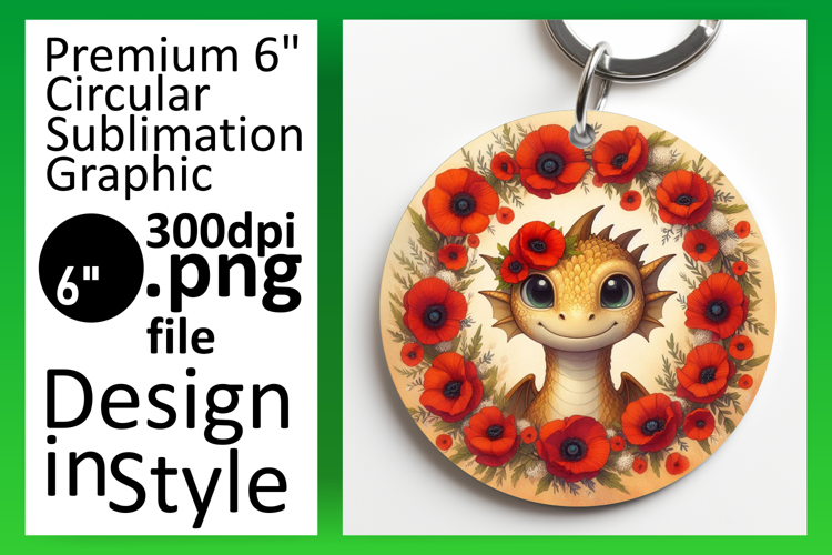 Playful Circle Design for Sublimation , Dragon