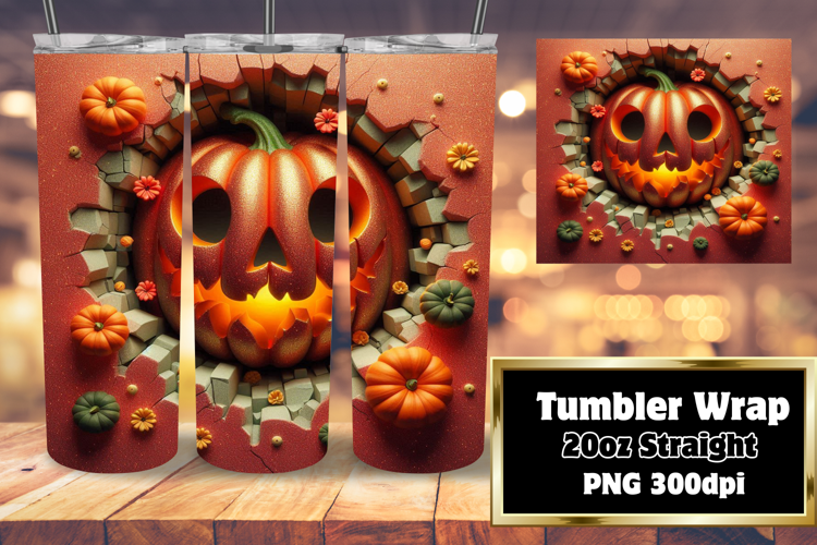 Special Edition 20oz Tumbler Wrap , 3D Pumpkin example image 1