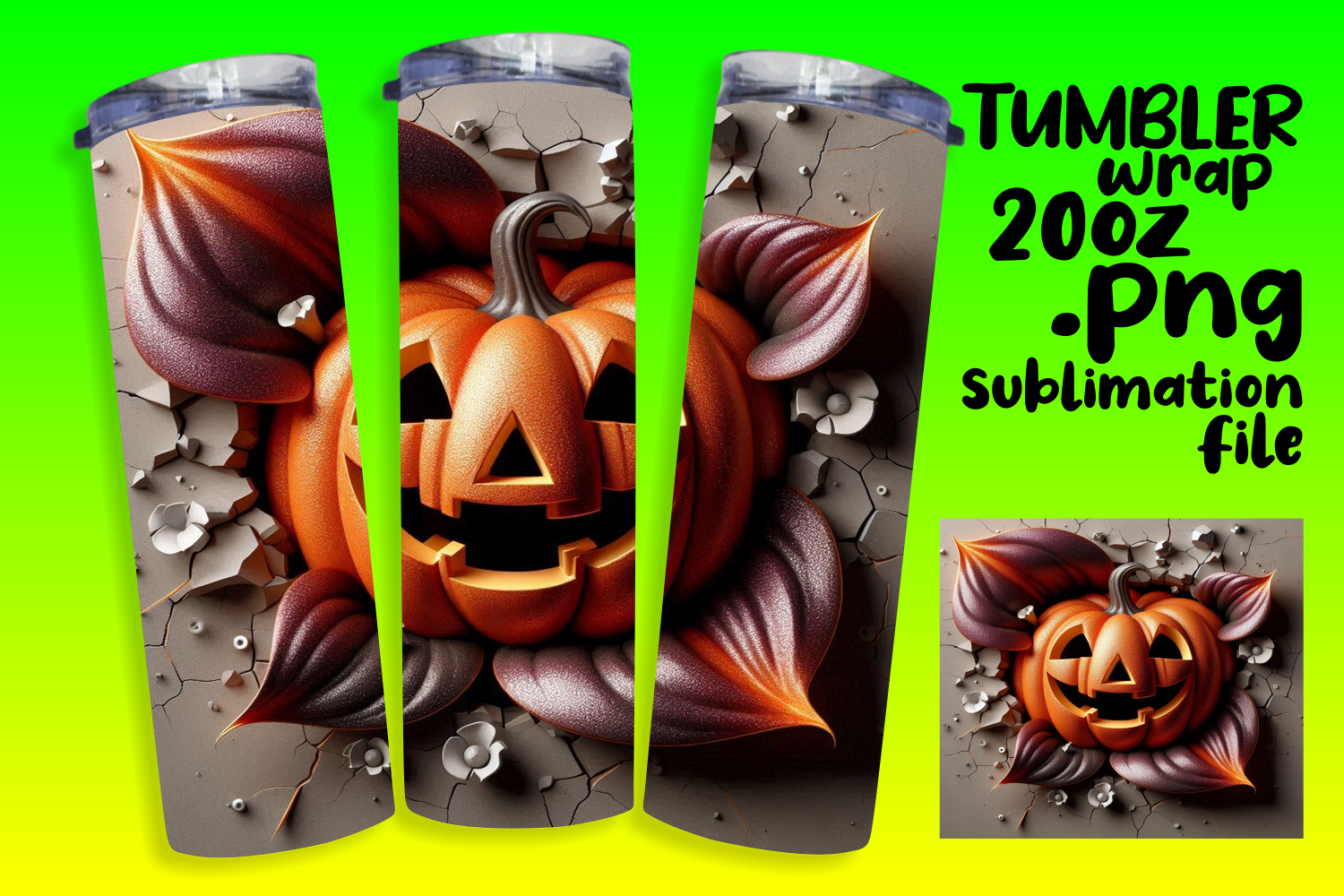 BEAUTIFUL 20oz Tumbler Design for Gifts , 3D Pumpkin example image 1