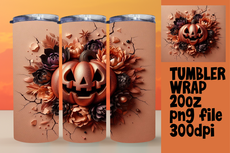 ELEGANT 20oz Tumbler Graphic for DIY , 3D Pumpkin