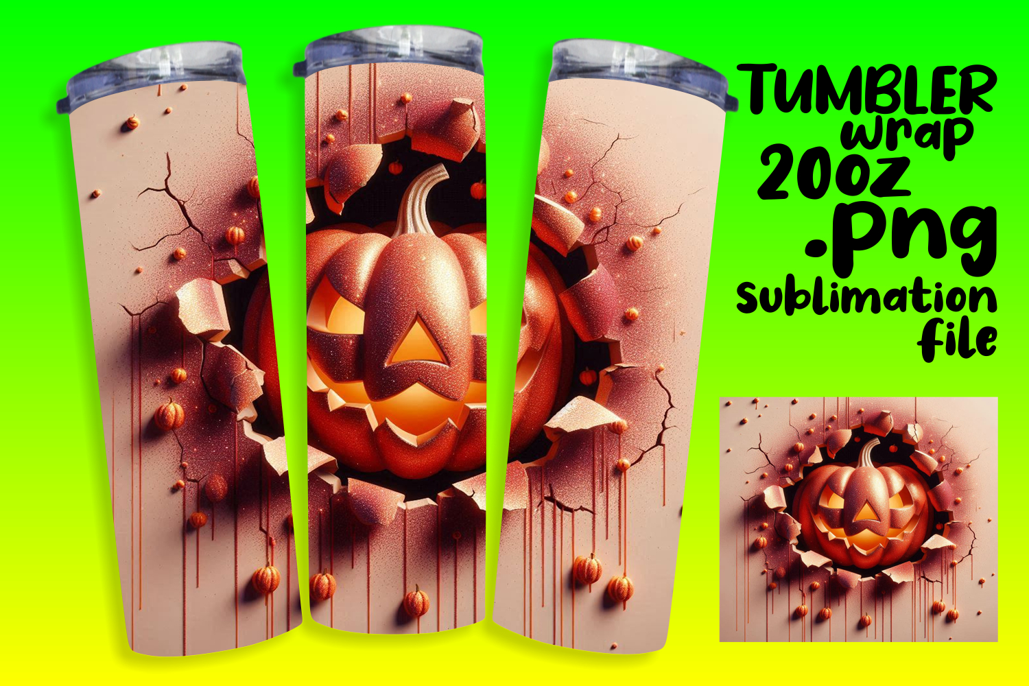 Similar Design Products to SLEEK 20oz Sublimation Tumbler Template , 3D Pumpkin