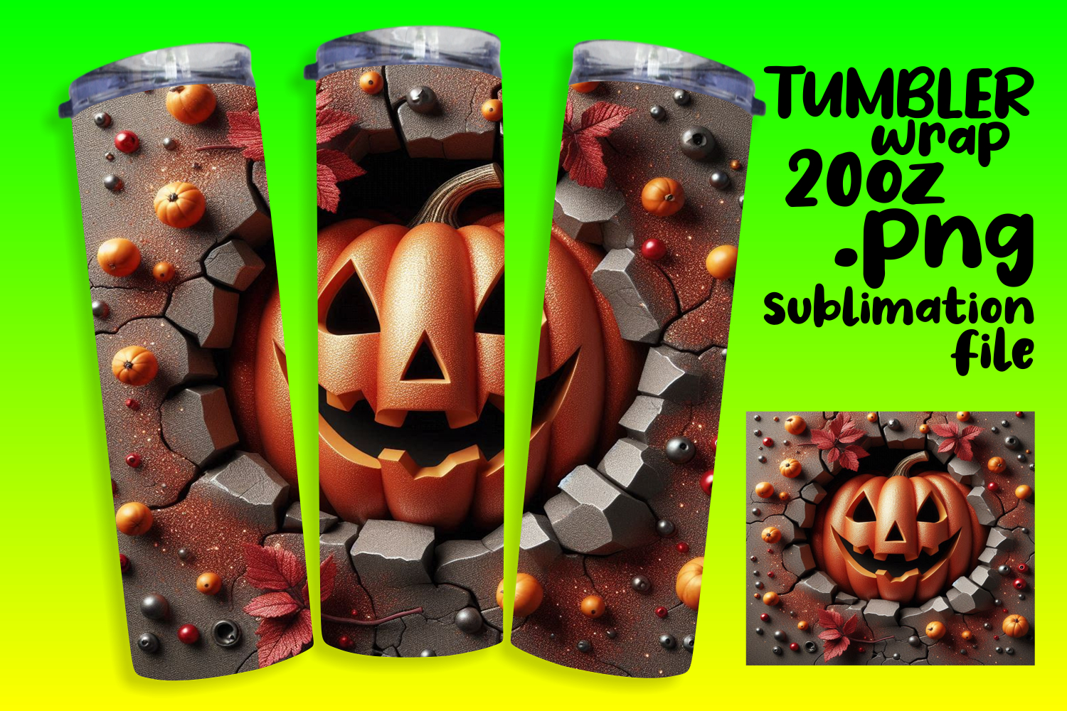 VIVID 20oz Sublimation Tumbler Template , 3D Pumpkin example image 1