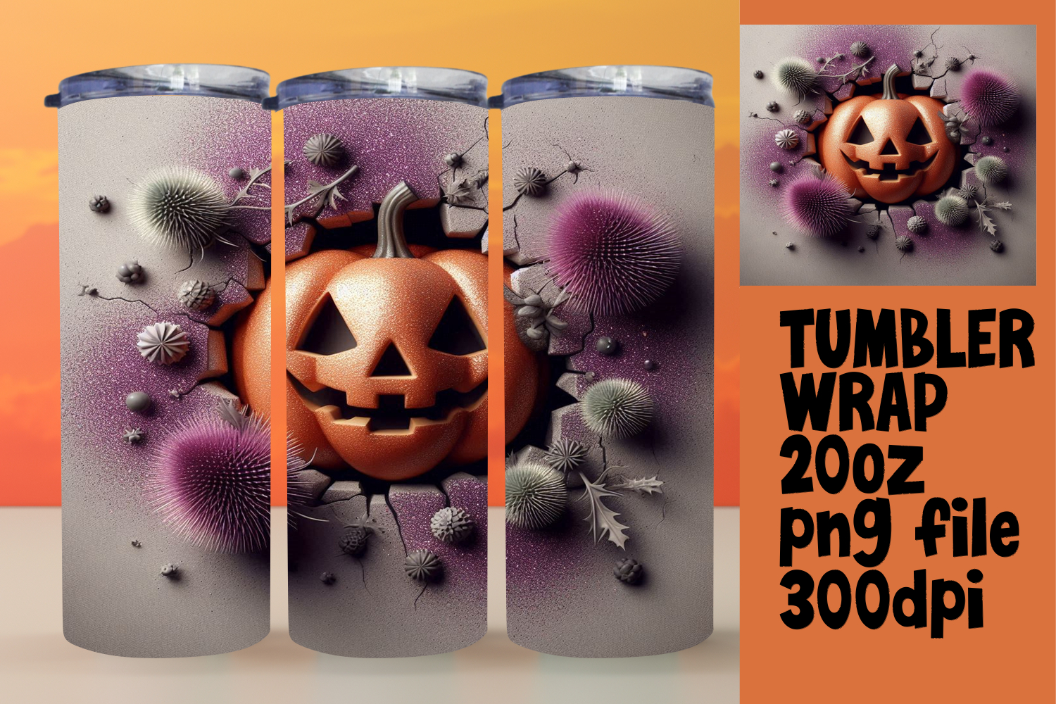 SOPHISTICATED 20oz Tumbler Template , 3D Pumpkin example image 1