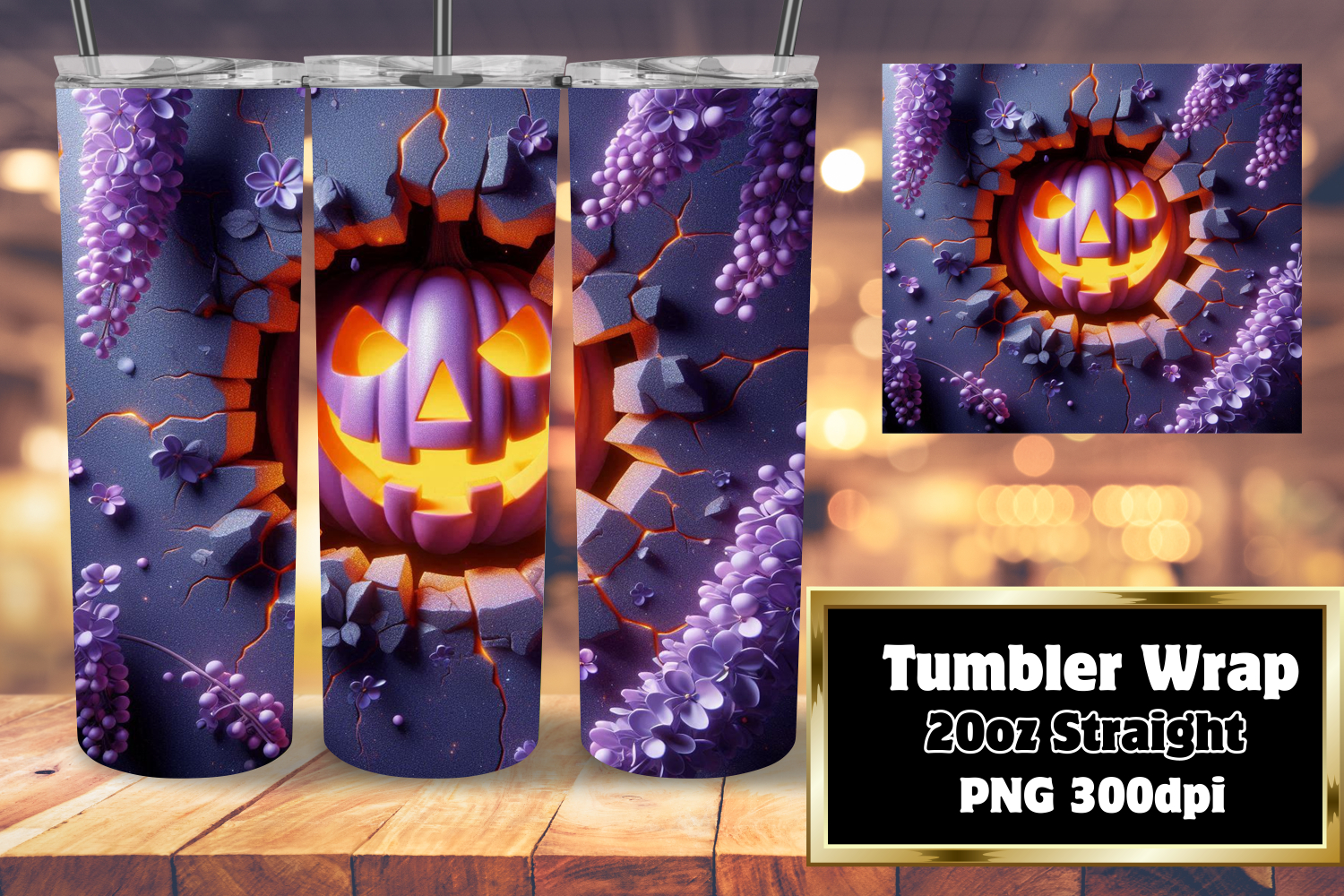 Similar Design Products to FRESH 20oz Tumbler Wrap for Personalization , 3D Pumpkin