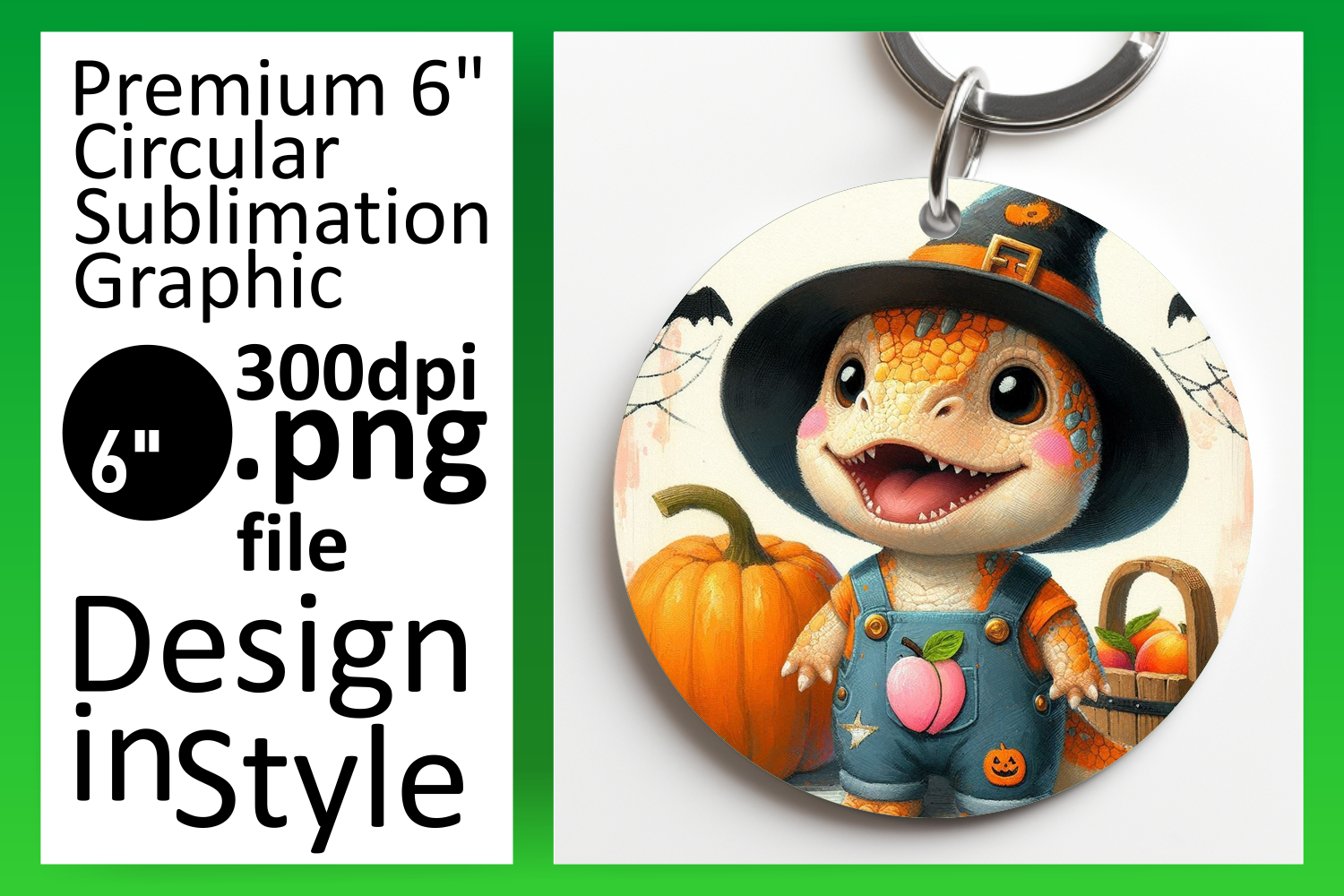 Colorful Round Design Keychain Artwork , Halloween Dino