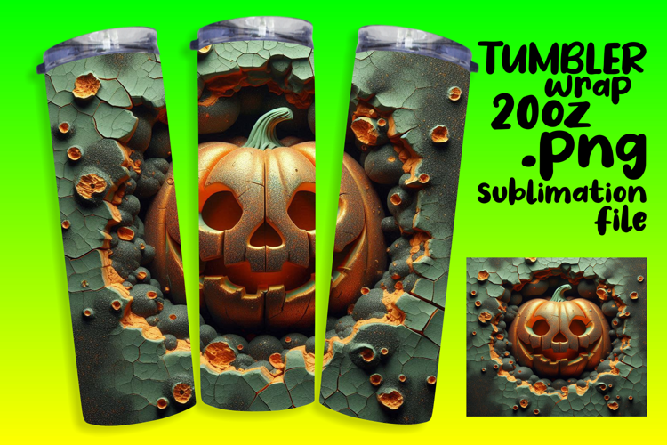 VIBRANT 20oz Tumbler Artwork for DIY , 3D Pumpkin example image 1