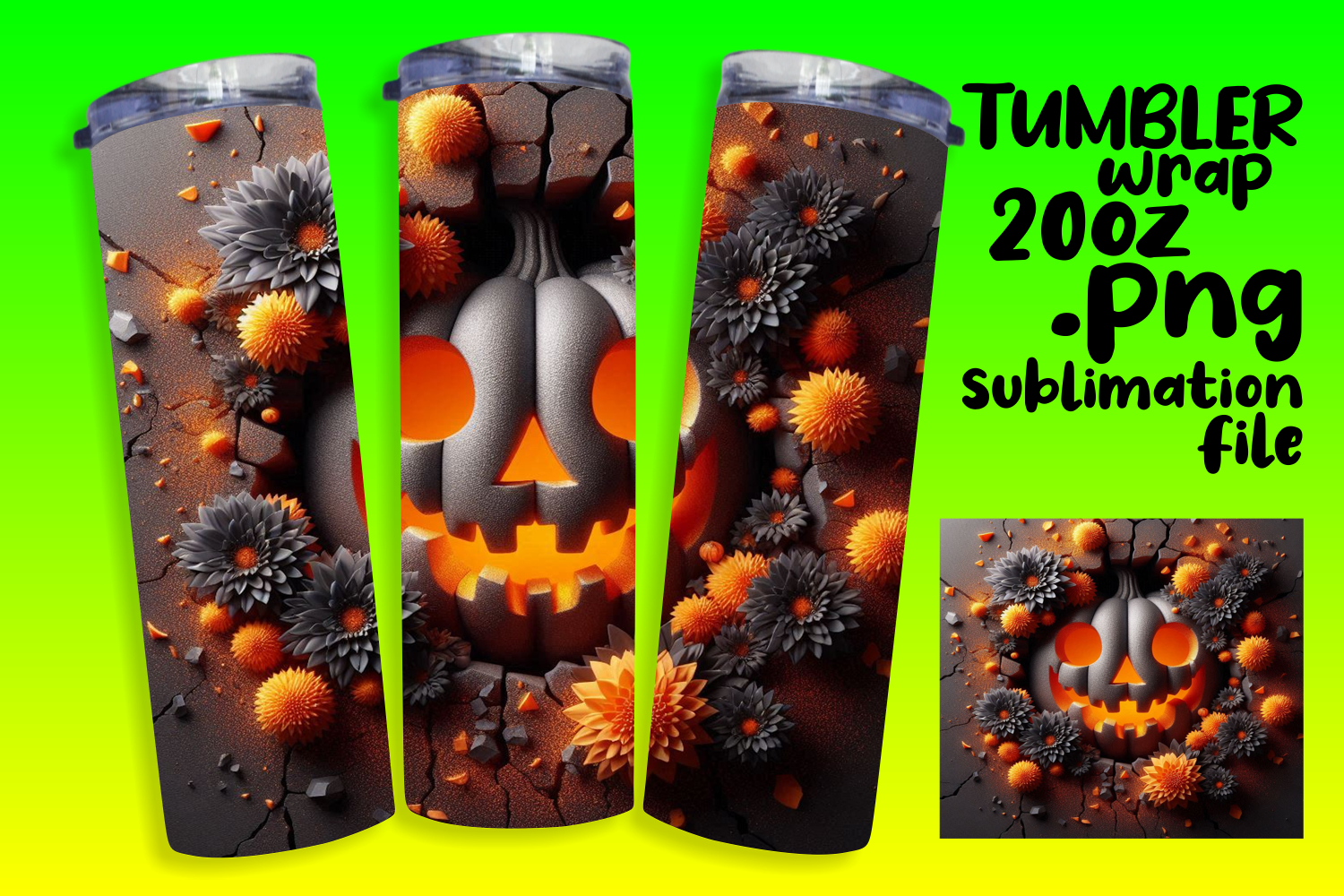 LUSH 20oz Tumbler Artwork for DIY , 3D Pumpkin