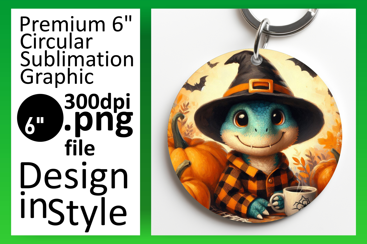 Creative Circle Design Keychain Template , Halloween Dino