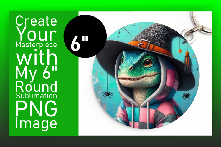Dynamic Keychain Circle Design Artwork , Halloween Dino example image 1