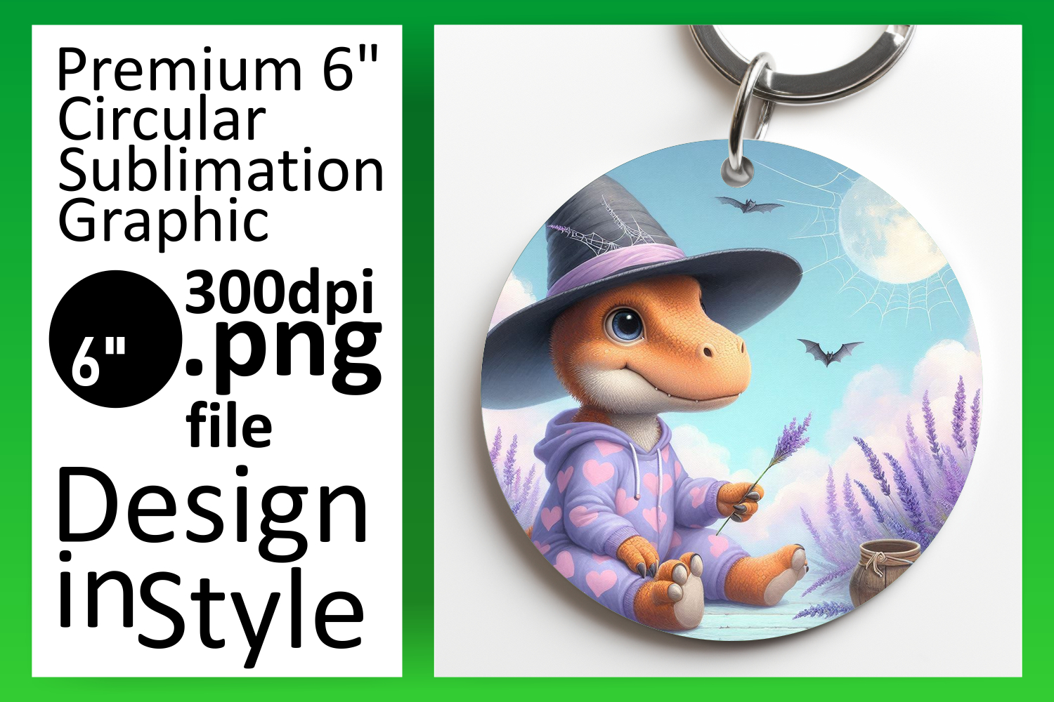 Stylish Circle Design for Sublimation , Halloween Dino