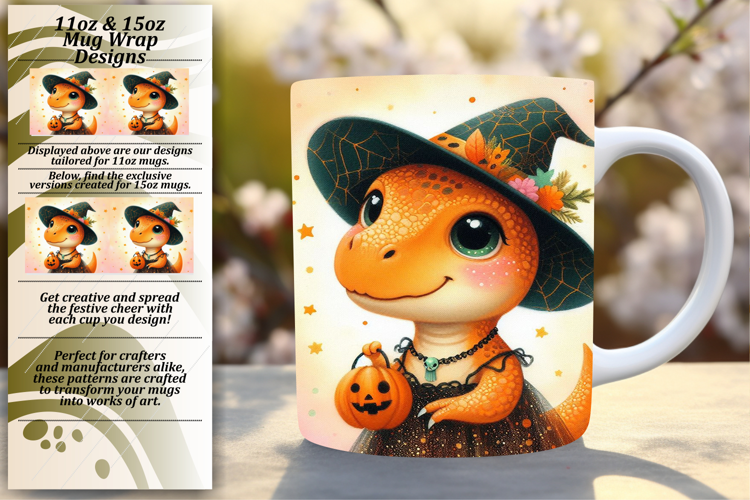 Customized Png For 15oz Mug Wrap , Halloween Dino example image 1