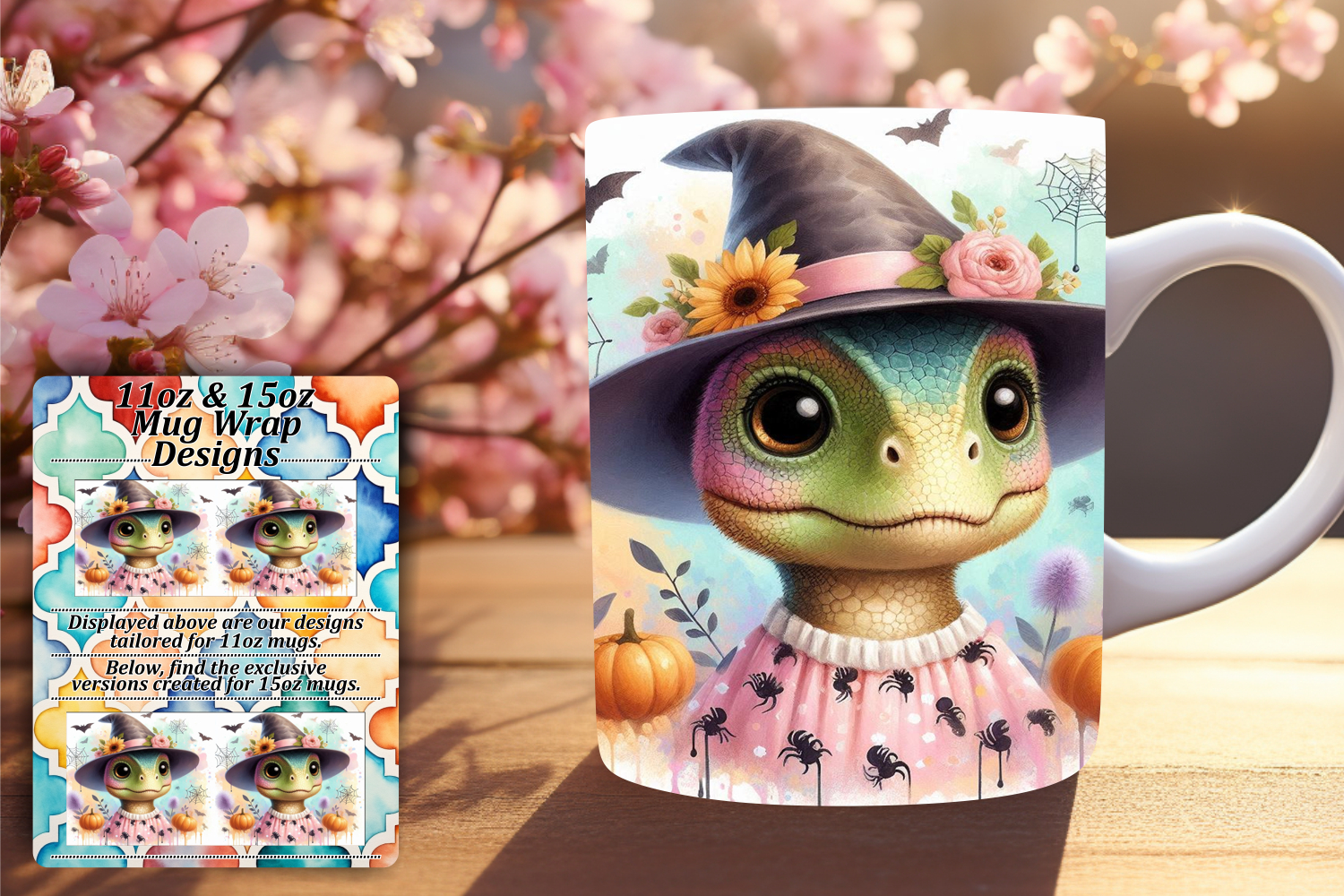 Chic 11oz Mug Wrap Png Design , Halloween Dino