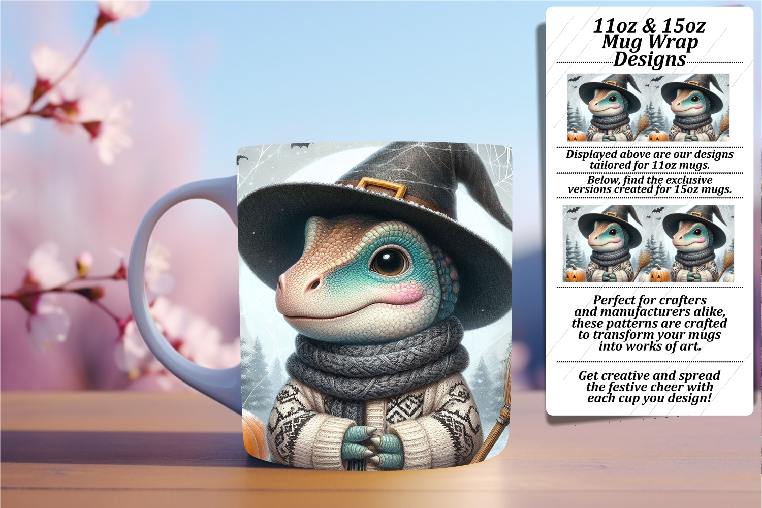 Classy 15oz Mug Wrap Png Design , Halloween Dino