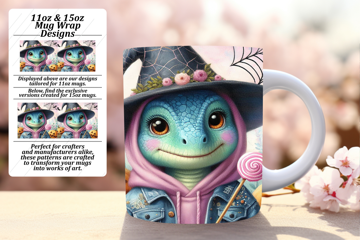 Sleek 11oz Mug Wrap Png Design , Halloween Dino