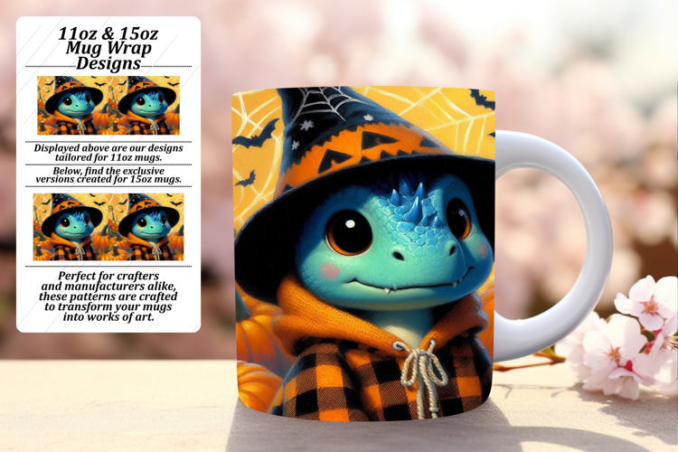 Whimsical 15oz Mug Wrap Png Artwork , Halloween Dino