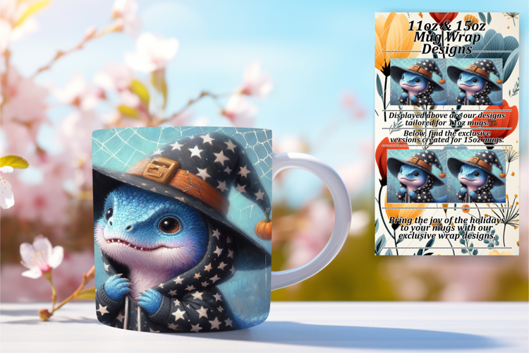 Dreamy 15oz Mug Wrap Png Design , Halloween Dino