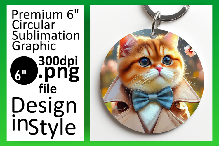 Creative Circle Design Keychain Template , Cute Cat example image 1