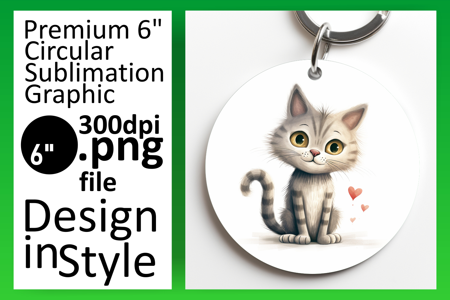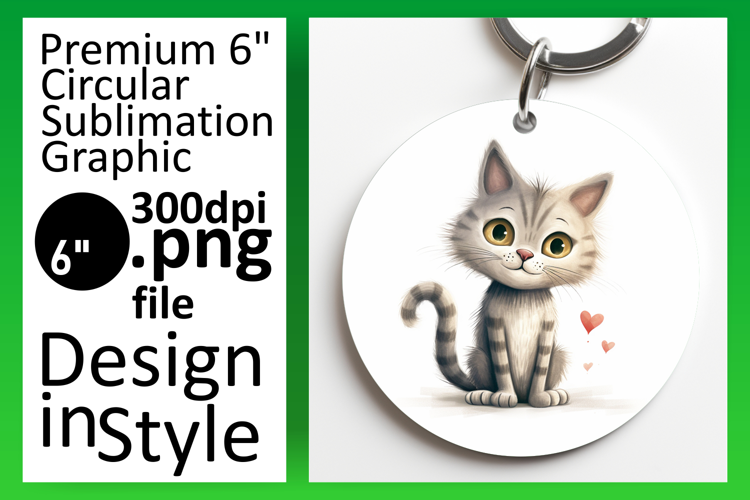 Whimsical Round Design Keychain PNG , Cute Cat example image 1
