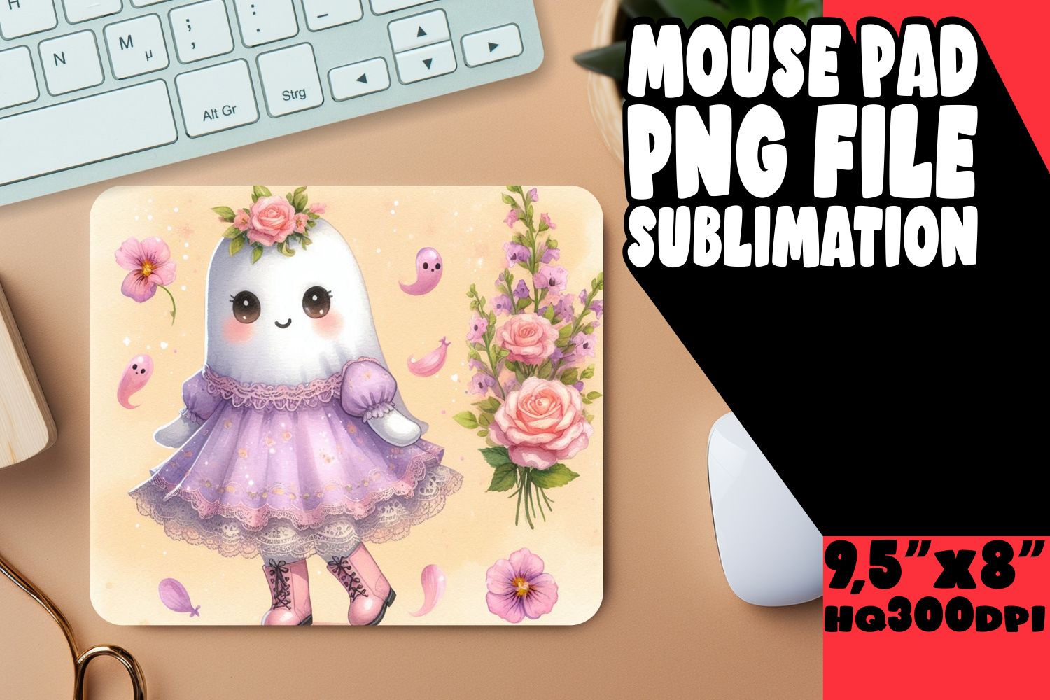 BRIGHT MOUSE PAD SUBLIMATION STYLE, Cute Ghost