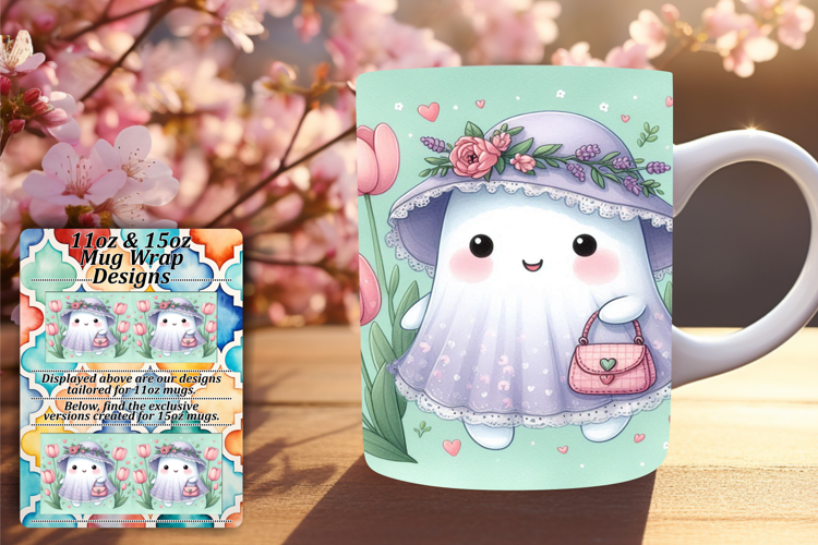 Lovely 11oz Mug Wrap Png Template , Cute Ghost example image 1