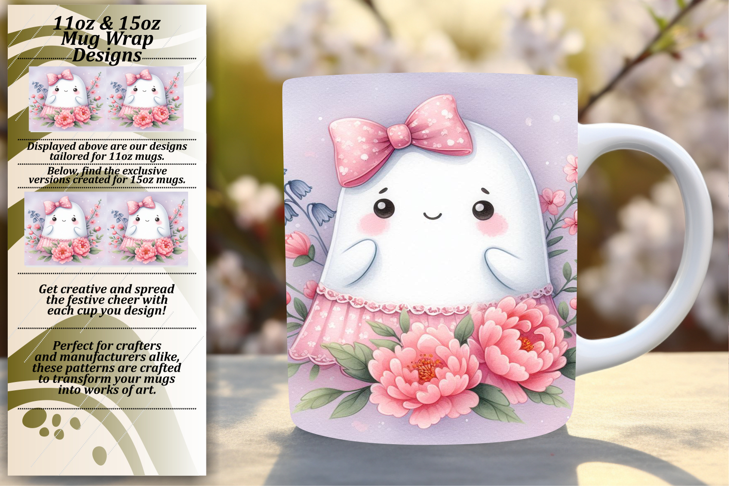 Creative 11oz Mug Wrap Png Artwork , Cute Ghost example image 1