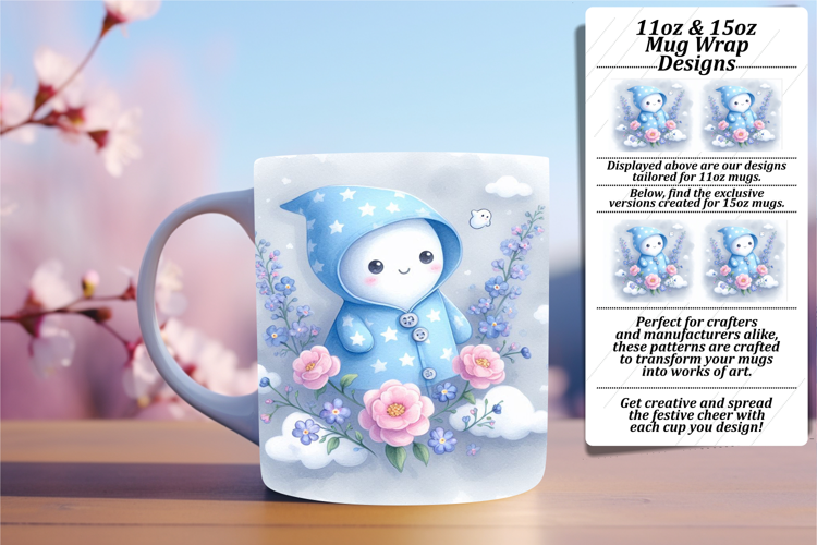 Lovely 15oz Mug Wrap Png Design , Cute Ghost