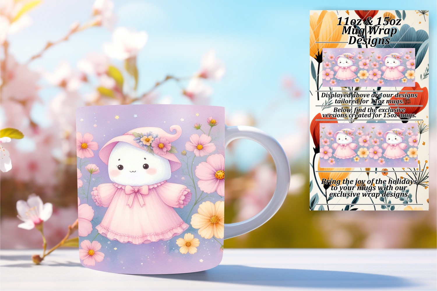 Creative 11oz Mug Wrap Png Artwork , Cute Ghost example image 1
