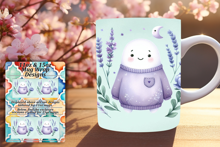 Gorgeous 11oz Mug Wrap Png Design , Cute Ghost example image 1