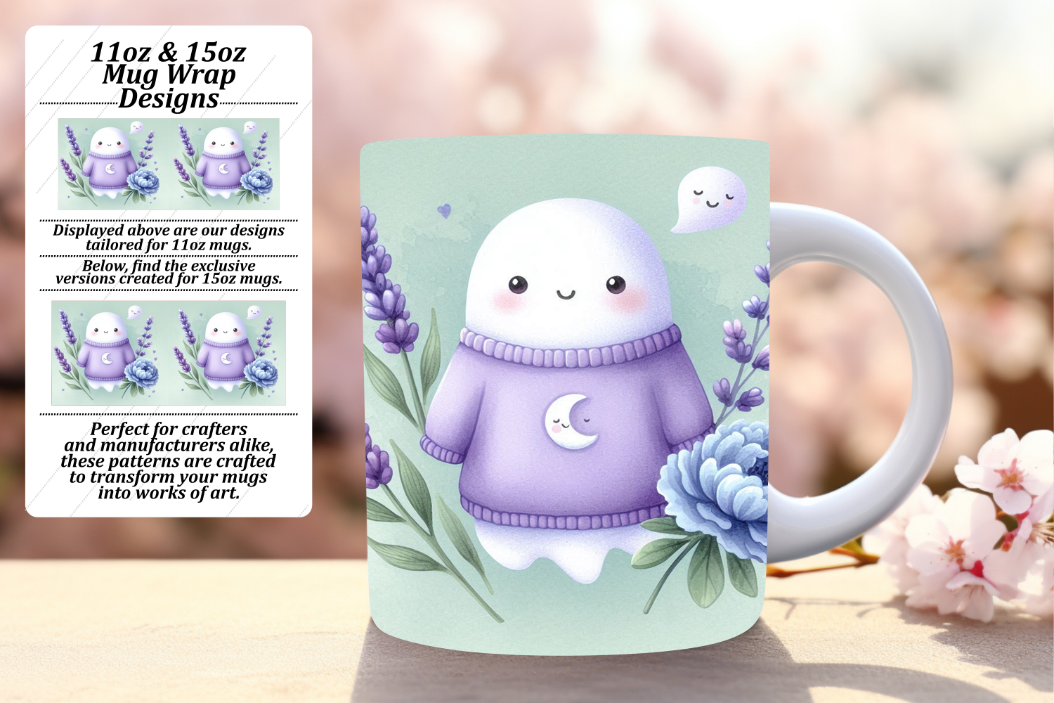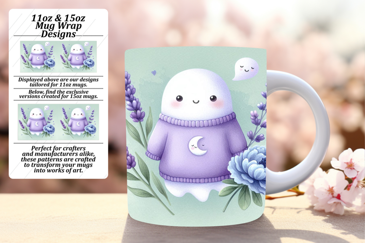 VIBRANT 11oz Mug Wrap PNG Template , Cute Ghost example image 1