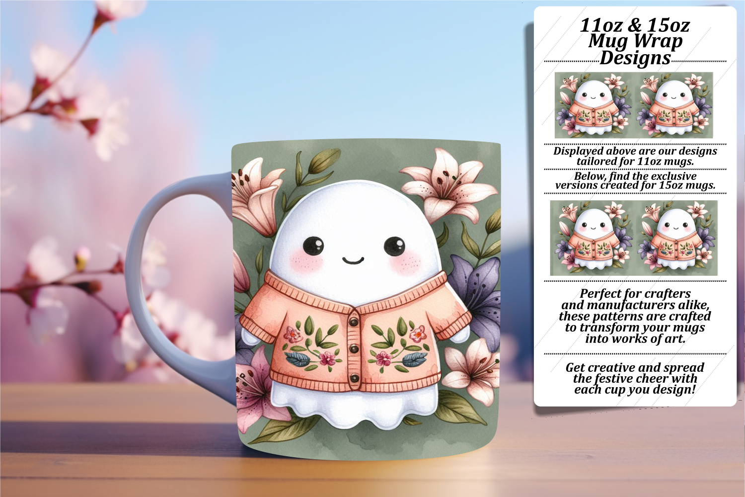 CUSTOM 11oz Mug Wrap PNG Artwork , Cute Ghost example image 1