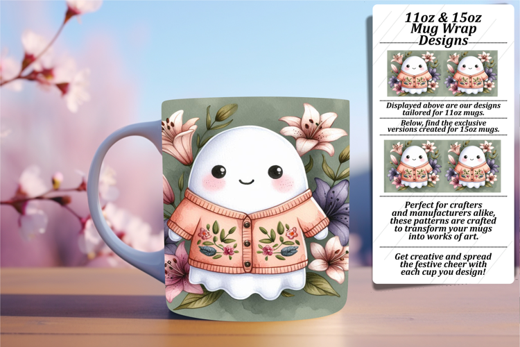 CUSTOM 11oz Mug Wrap PNG Artwork , Cute Ghost