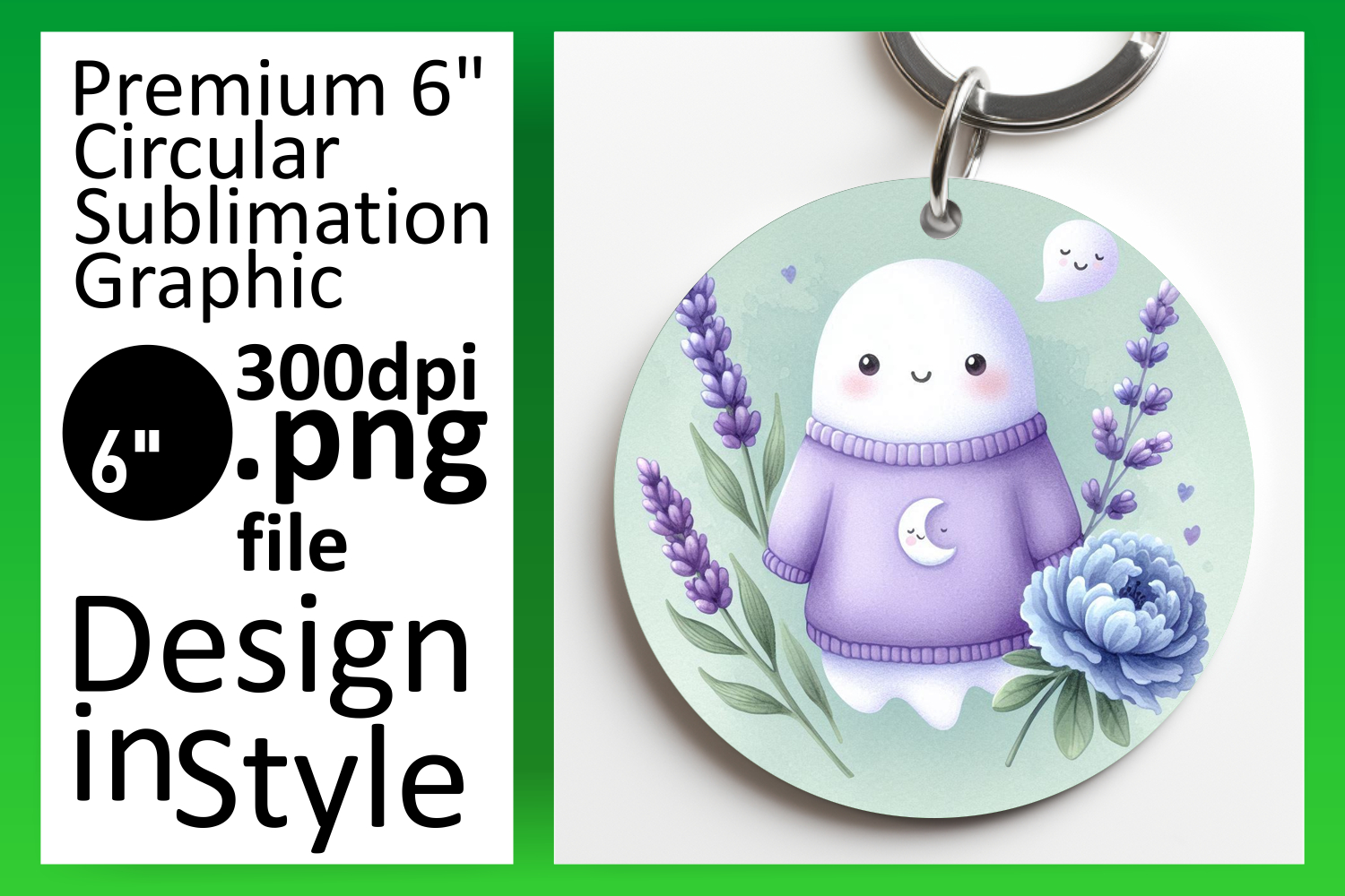 Dynamic Round Design for Keychains , Cute Ghost example image 1